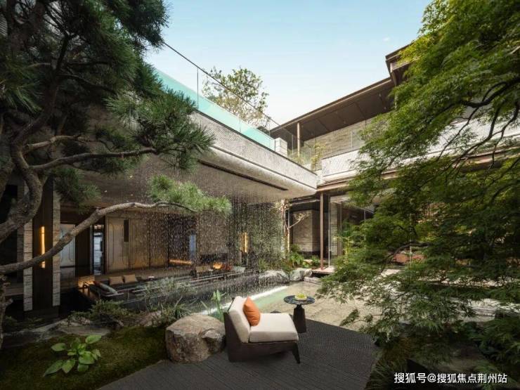 悬挑泳池尤为让人瞩目,创新设计江南岸首个悬挑式无边际泳池,搭配流水幕帘与青玉雕刻的“聚宝盆”,水流潺潺间,不仅度假氛围浓郁,蕴含“吉祥美好”的寓意。