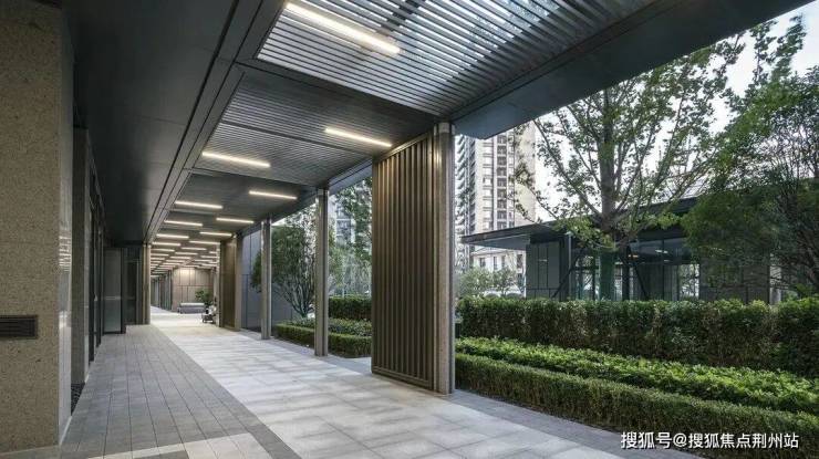 轴线与园林结合是社区布局的鲜明特征,半包围结构烘托了场所的归属感,每个片区及区间均设计有邻里花园,辅以居民活动场地,成为生活空间的拓展。小区动线转化为风雨廊系统,形成了层层递进的景观体系:“小区入口通道”—“中心花园”—“组团步行绿道”—“住宅底层架空空间”—“入户门厅”,也成为住户间休闲交往的纽带。