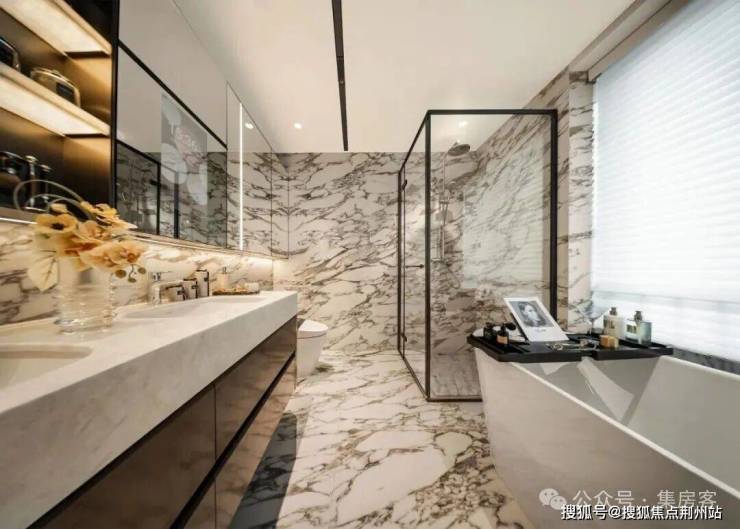 甚至主卫,也是香港瑰丽客房洗手间的足本复刻,黑白灰水墨岩板,装点出一间“私人水疗美术馆”。真正的奢侈,就是要让最功能性的空间也值得驻足欣赏。