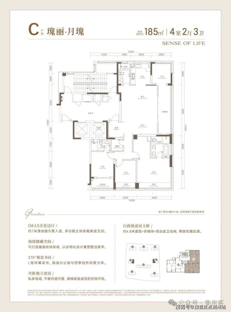 同时,不仅餐客厅有着约7米的落地门窗,书房与主卧还都坐拥270°采光面,任由晨光与暮色在家中流转,也撑起了豪门大宅的自信气场。