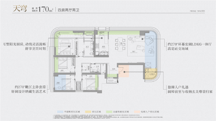 改善主力:170-180㎡户型,全明设计+超大观景窗,最大化延伸观江视野,每一个空间都能拥抱江景,满足高端改善的极致追求。