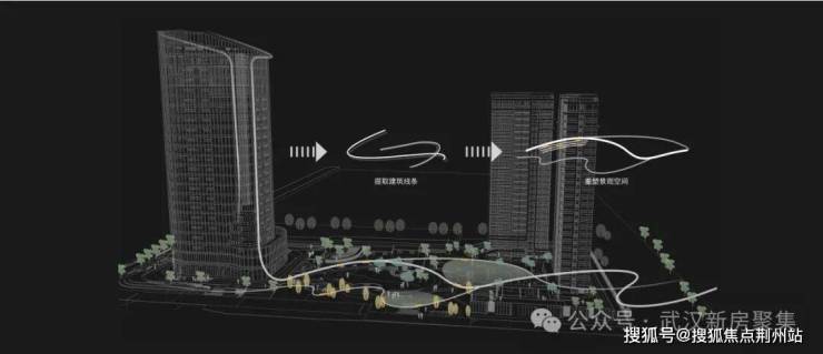 项目在整体规划上以“高山流水”为设计核心理念,以半包围式建筑结构创造“珠玉落玉盘”之形,打造“三境十二序”景观节点,汇聚大武昌天元雅韵之风。