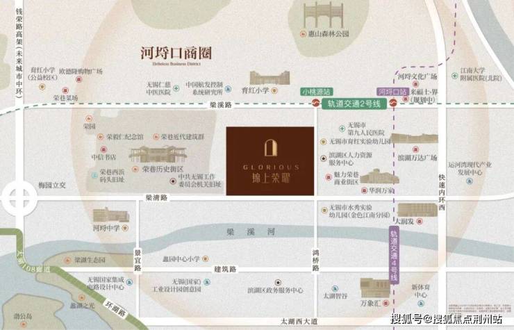 更值得一提的是,项目地处梁清路与鸿桥路交汇的“黄金十字”,占位无锡主城芯难得稀缺地段,不仅承袭荣巷千年工商文脉,同时链接蠡湖湾科创产业带与运河湾现代商业带,堪称高端人才聚集、高知群体青睐的“塔尖生活区域”。