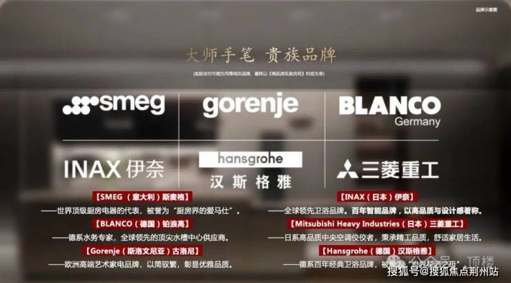臻选SMEG/劳芬/古洛尼/伊奈/铂浪高/三菱重工/威能/汉斯格雅/杜拉维特等国际一线大牌(具体以商品房买卖合同为准),以至高规格的精装修标准,塑造高颜值、高配置、高舒适度的居住空间。