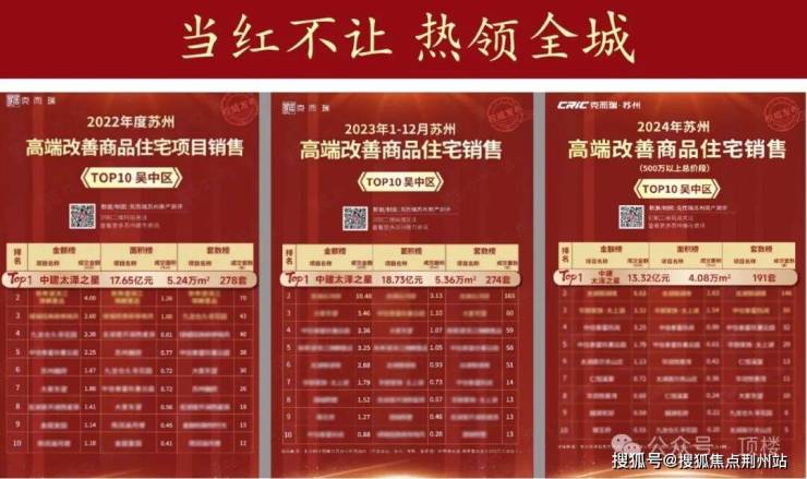 中建·太泽之星|阅湖&御湖,作为吴中人气红盘TOP1,蝉联2022-2024年度吴中区高端改善商品住宅销售三冠王(总价段500万以上),荣膺2024年度苏州市区住宅销售金额面积双榜单前五,荣膺2024年度吴中太湖新城住宅销售金额榜TOP1!