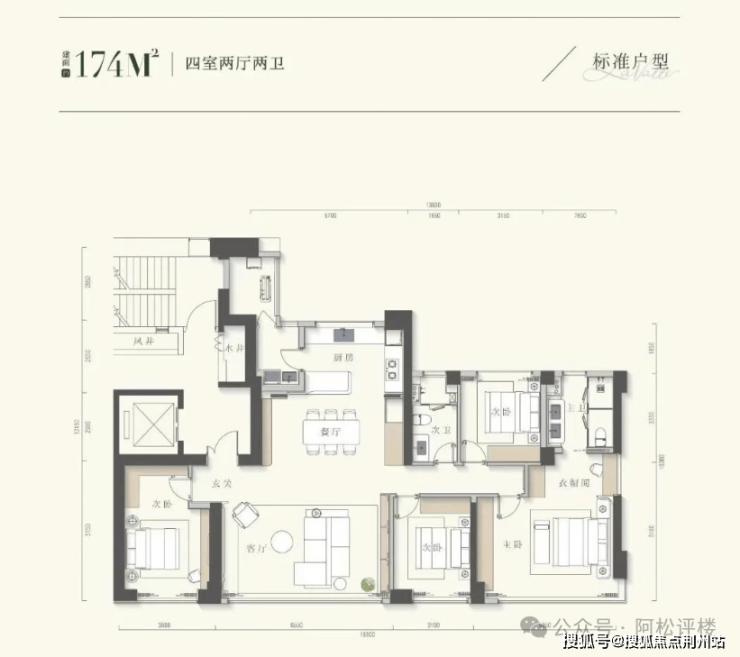 该户型是T3号楼典藏四房,同样是独立电梯前室,入户双玄关,同样是大开间、短进深的四开间朝南,无论是南向采光、景观视野还是通透性,都堪称“上品”。