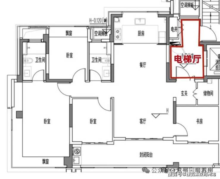 电梯合用前室东西两侧各自独立,且空间很大,可作为两户专属拓展空间。