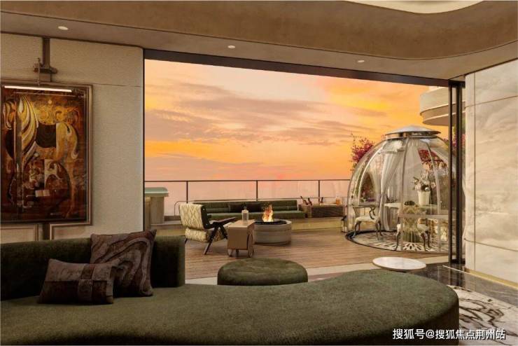 云端院境让自然与生活无界相拥。约6.6m错层挑高露台,楼上楼下互不见影,却能共享同一片天光,在繁华里守住一份诗意的从容。作为X空间的空中院馆,可以是运动场域,让居住者随时保持健康的生活方式;也可以是茶室、艺术空间等,满足业主的个性化需求。