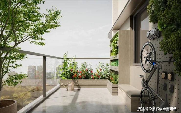空中庭院是献给生活的留白诗篇。约6.2m挑高露台如悬浮的绿洲,晨时可摆上瑜伽垫与晨光共舞,暮时能置张茶桌看晚霞染红河面,甚至能种上几盆月季,让花香顺着风溜进客厅。