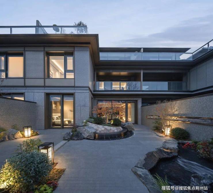材质上选用仿石铝板与金属的结合,既有石材的稳重质感,又充满现代的精致气息。于别墅重点部位创新运用“歇山”意象与现代格栅,于细节处雕琢,彰显建筑的高级感与独特身份。