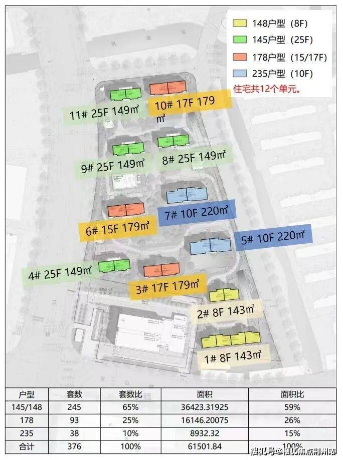 规划楼栋数及户数:11栋住宅(共376户)