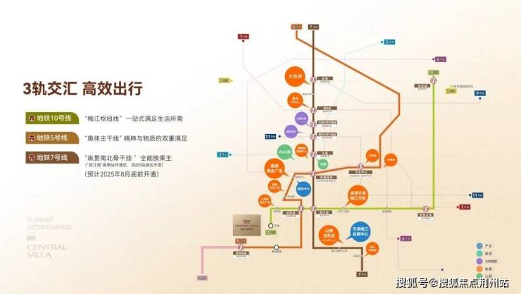 即将开通的7号线是南北贯通的大动脉线路,直接链接整个城市南北,而10号线整体规划在黑牛城道与外环之间,成为地铁路网的东南半环。5号线则是贯通全城东北到西南的核心干线,重量级商圈与城市关键点位都在这条线上,而且是有名的换乘王。有消息说天津在建地铁路网2027年将会全部建成,整个地铁路网的全城通达性将会实现飞跃,对全城客户的吸纳能力也无疑会空前强化。