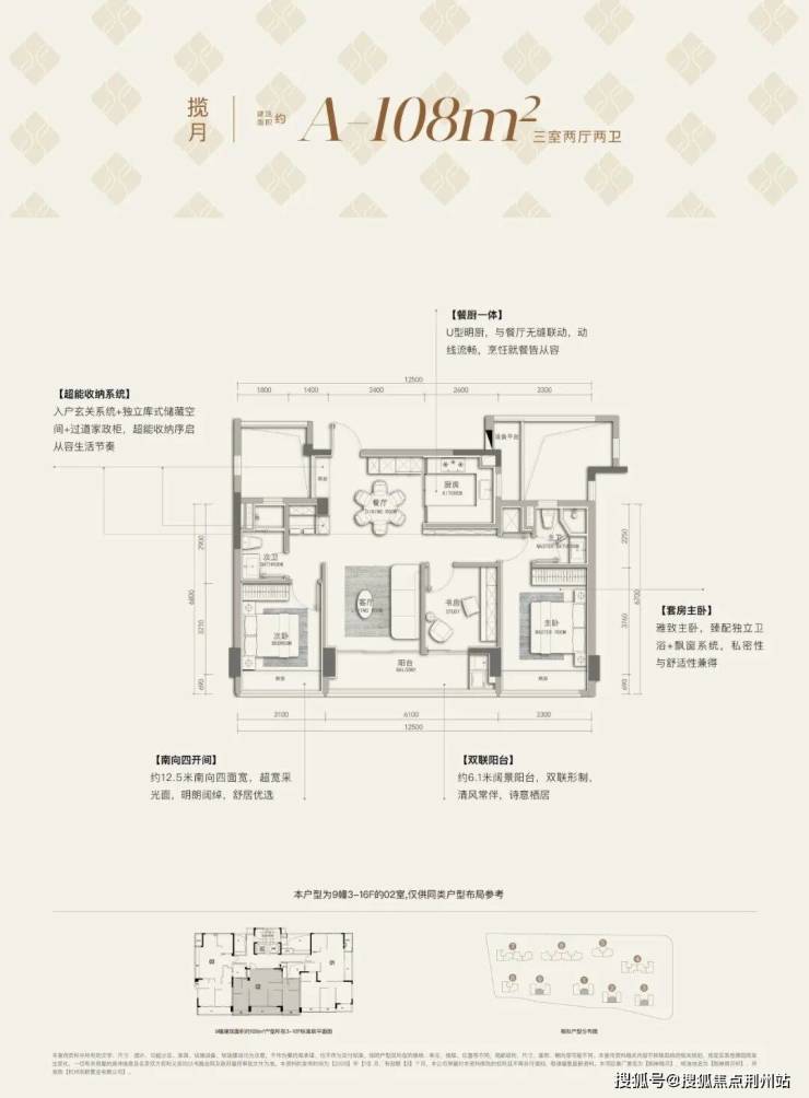 绿城熙岸晓月的起步约108方阔绰3房户型,做到了南向四开间+约12.5米的大面宽,是入门即改善的典范。