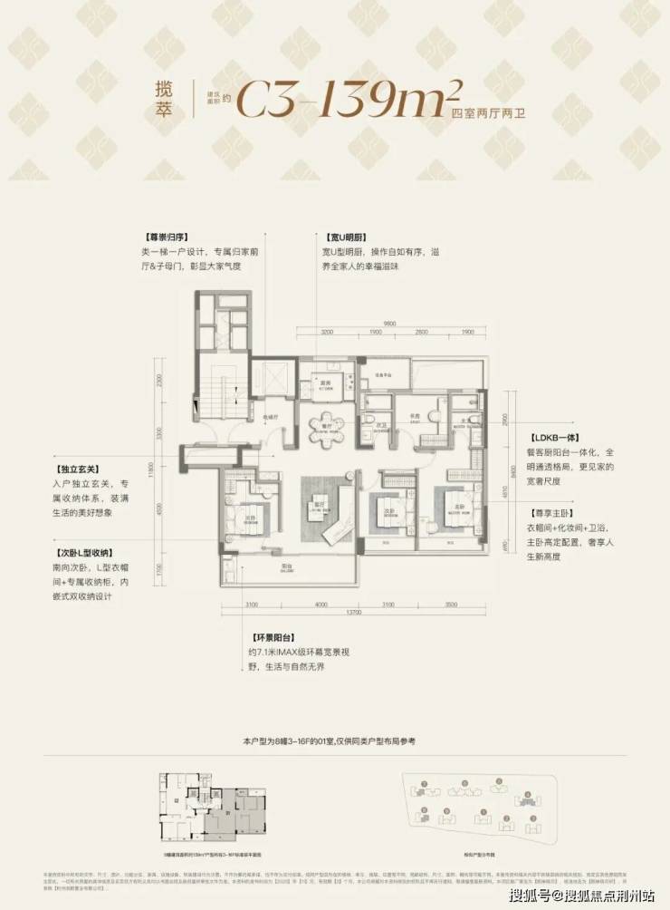 约139方改善大四房户型,类一梯一户+子母门+4房设计,无论是二孩家庭还是三代同堂都能满足。