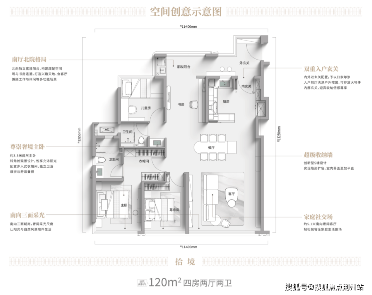 建面约120㎡户型,尊崇感更强。