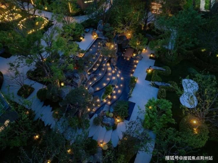 更有意境的还要数中庭山水的飞瀑茗台,园林大师龙湖为了保证上下左右各个视角能够看到水景的叠瀑,局部抬高地形打造南北跨度8米的地势高差,将水景由纵向改为斜坡,各自成景,实现7层叠水飞瀑,与小区南侧的山水景观内外呼应。