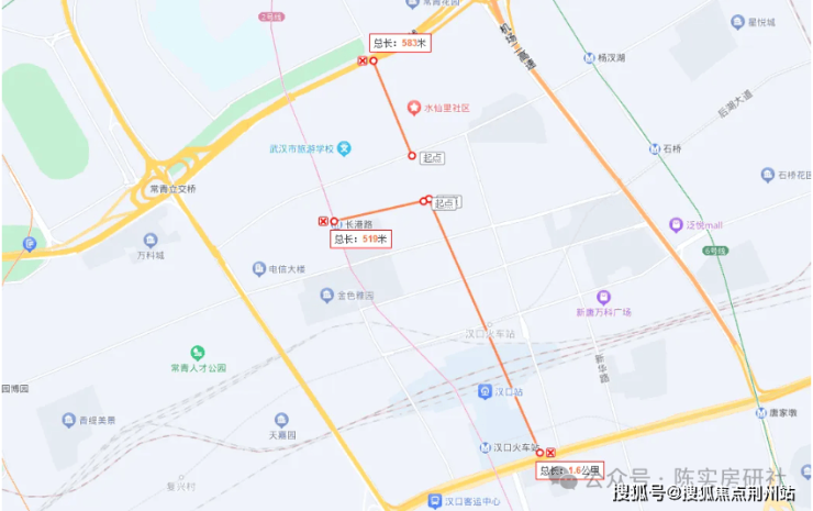 地铁:距2号线长港路站约500米(实测步行12-13分钟),12号线(在建)汉口站北广场站约700米,远期规划23号线预留用地。