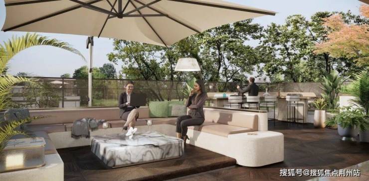 让我们将视野从一楼客厅升格到御江帝景的私享时光屋顶花园。从设计图稿中,我们可以看到,区别于一般排屋别墅项目的“斜屋顶”和中小露台设计,它采用的是大尺度“平屋顶”设计,从而让业主得以在此拥有360度宽境视界。