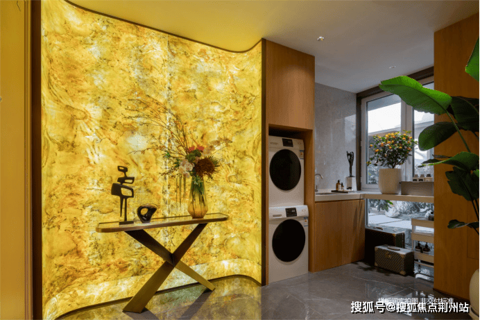 大家印象深刻的电梯厅,化身家政间。洗衣机、烘干机外置,释放室内空间;