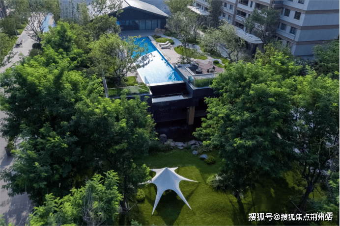 在青特缦云的洋房、小高层社区内,具备酒店化居住场景的泳池、运动、孩童活动、茶室等功能的泛会所。