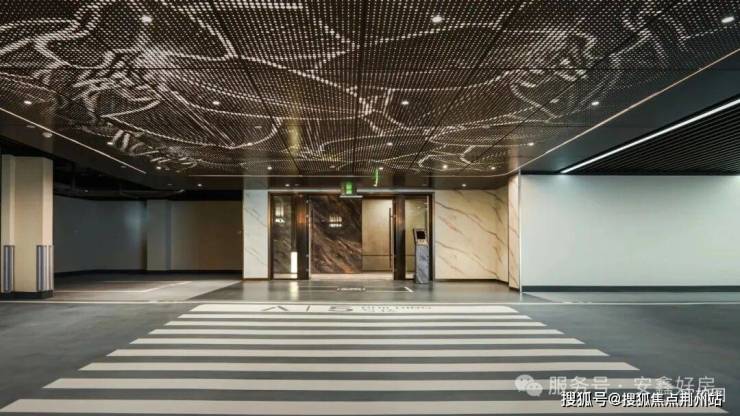 甄选爱马仕灰石材+玫瑰金铝板打造双层精装入户大堂。
