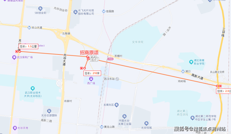 项目位于光谷三环内。属于关山核心板块,毗邻武汉东站,到关山大道直线距离仅约1.5公里,三环线约3公里。