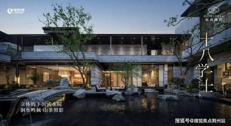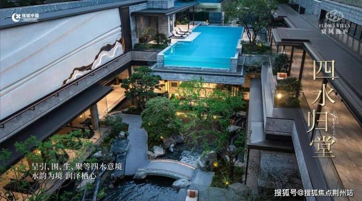 鼎筑约50米酒店式华盖门仪,进阶归家体验;引水入园,以溪涧、逸亭、瀑布、小桥约“150米中央景观水系松壑长风”;复刻《溪山清远图》。