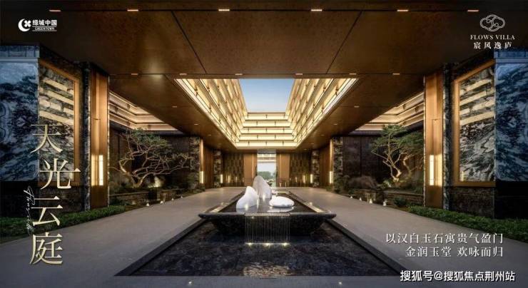 入口两侧,“翠谷幽兰”奢石静静矗立,搭配上一座别具气场的雕塑,每一处细节都彰显着不凡的格调。