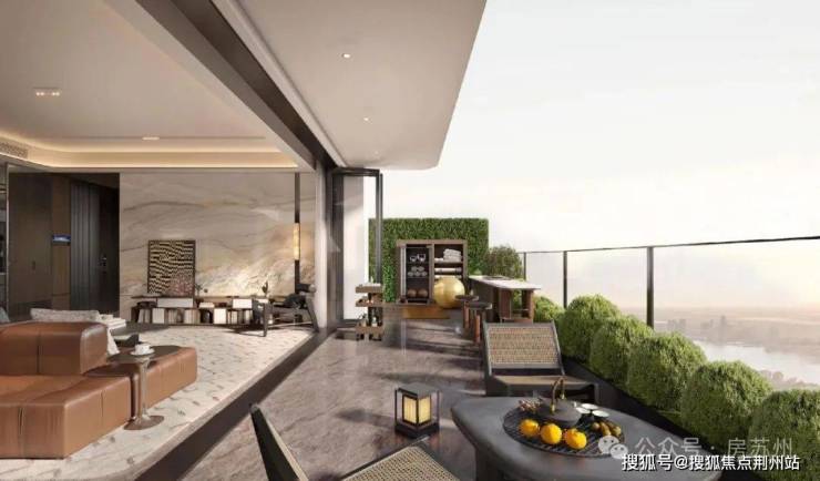 ※栋式天地叠院立面:现代简雅立面勾勒太湖水韵纹脉线条,刷新苏州天际线