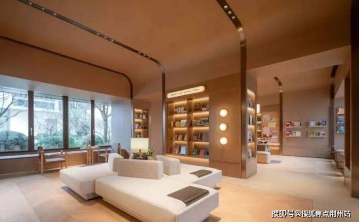 进入大门,约108平社区大堂更是气度非凡,通过全景落地窗能直面小区内部的仪式水院,设计相当绝妙。