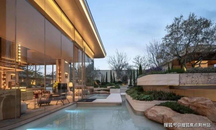 穿过社区大堂,沿着时光回廊前行,两侧是静谧水院缓缓延伸,配以高低起伏的名贵植被,尽头是景观会客厅,在这里可以通过大落地窗环视小区园林。