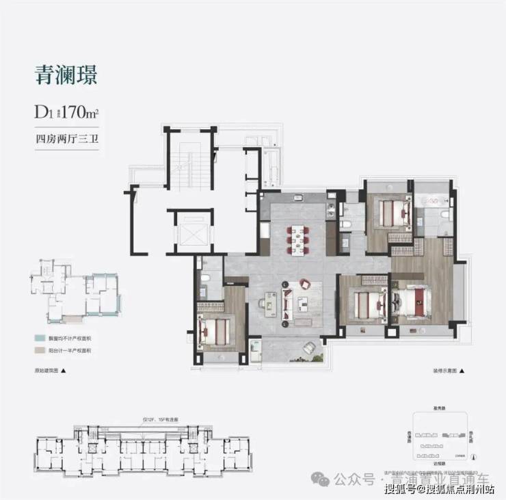 170㎡四房更适合改善家庭,主卧豪华套间配270°大观景窗,宽景客厅能划分出办公区,U型厨房洗切炒动线合理,预留了超多收纳空间,三代人同住也能互不打扰,私密性和舒适度都在线!