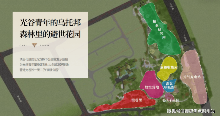 包含为光谷青年量身打造七大全龄友好聚场,比如元气充电站就规划了2个篮球场+2个网球场+1个滑板场,还有像户外露营区域、宠物乐园、儿童乐园等等。