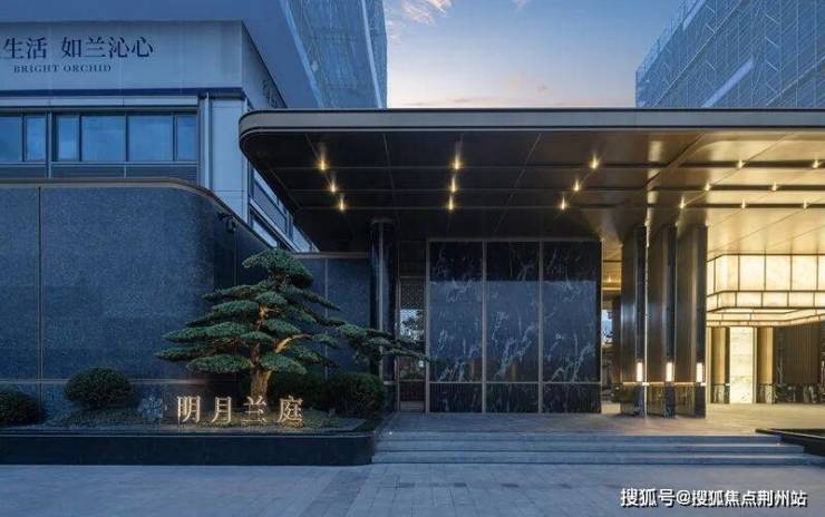 铺满黑奢石的墙面,搭配两棵名贵的迎客松,雅奢风范不显自彰。