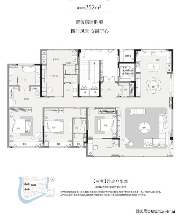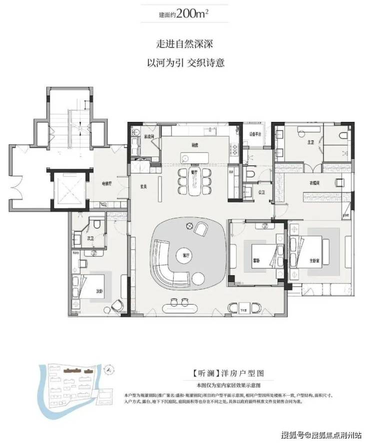 户型最小建面约200㎡起步,最大联排建面约359㎡。其中洋房户型,层高3.15米以上,清一色大面宽、南北通透、多套房设计。