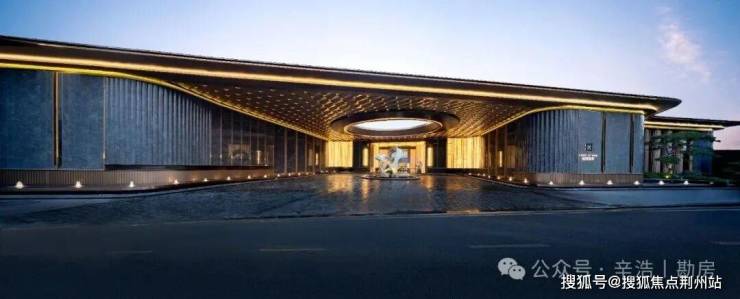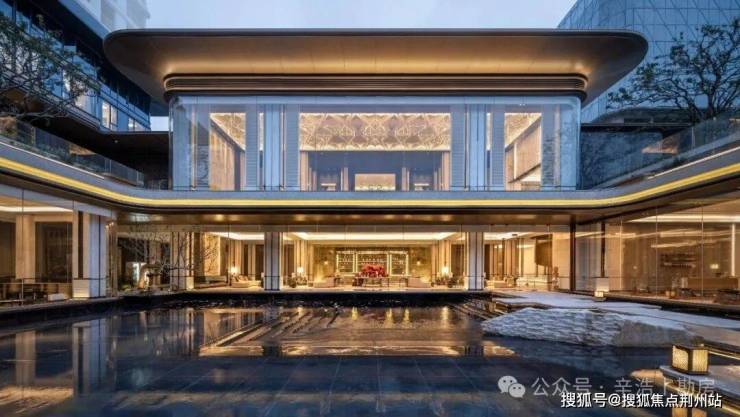 🔹项目打造东、南、西三个社区入口界面,东侧利用沿街景墙连同80m+的山水归家超级界面,入口大面积金属吊顶采取“万字曲水纹”图案,体验城市收藏级归家入口。西侧约60米社区大门为业主归家车行主入口,一线对望湖滨,以伴水归家水境营造奢华游园之旅。南侧大门为别墅洋房区人行入口,取意苏州园林借景手法,营造中轴主景观节点,出入可直接眺望南湖。