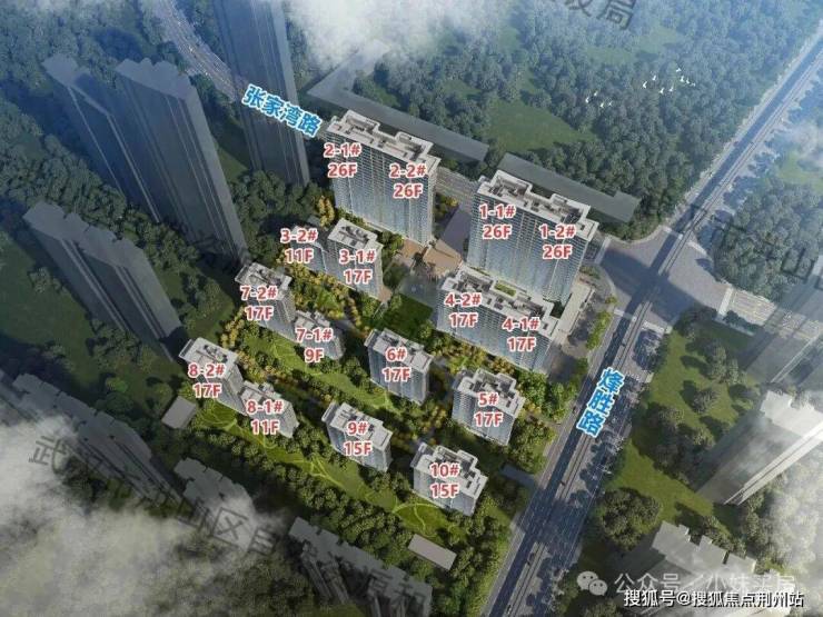 项目共规划10栋住宅,其中2栋26层高层、8栋9-17层小高层及洋房。具体分布:1、2号楼26层,首层架空;3号楼11层;4-6号楼17层;7号楼9层;8-10号楼11-17层。