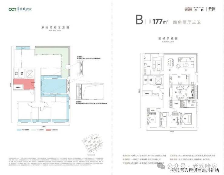 建面约135㎡四房,LDKB一体化通厅,南向超13米采光面,约94%—98%的综合空间实用率,同面积段多出一间房。