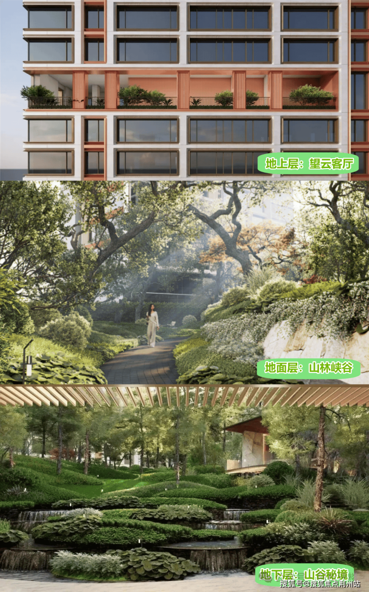 走进社区,地下层的山谷秘境,地面层的山林峡谷,地上层的望云客厅,让你从繁华中来,到自然里去,不出社区,即可尽享自然与清风的宠溺。