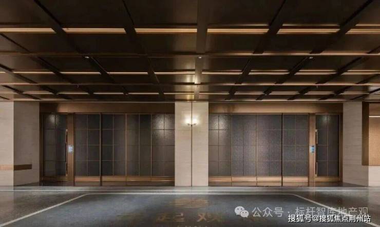 约63米超尺度门庭,地面通铺宇宙黑奢石,沉稳内敛;约13X5.5米的铜门,由匠人运用4种非遗工艺,手工锻打出独一无二的潮涌锤纹。
