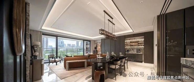 户型空间规划逻辑清晰且功能齐全,内外双玄关的设计解决了收纳与隐私问题,约90㎡的餐客厅+阳台组成的超大公区,无疑是空间的灵魂所在,约8.2米的开间将客厅、餐厅、西厨岛台融为一体,并无缝衔接近11米的270°L型全景阳台,引运河风光与充沛阳光入室,自带松弛感。