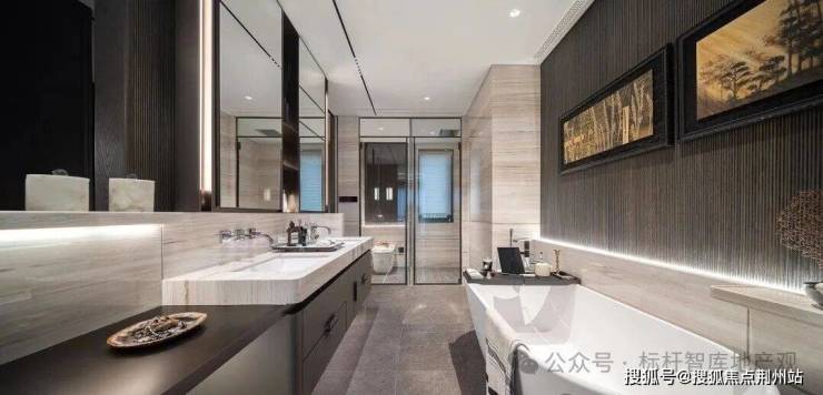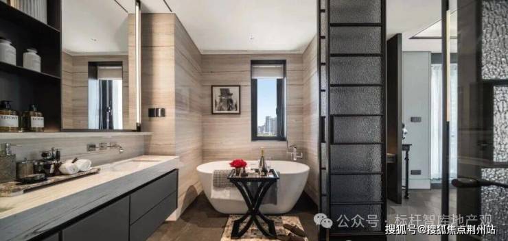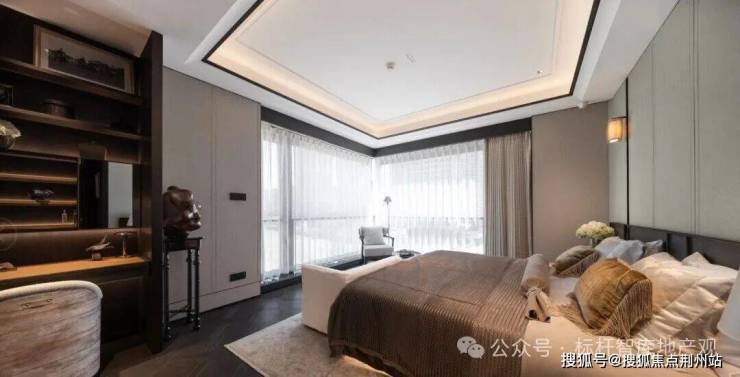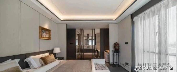 最令人惊艳的是约 43㎡洄游式豪华主卧,面积堪比普通住宅的 3 个房间,且采用 “衣帽区、卫生间、卧室”三分区独立设计。