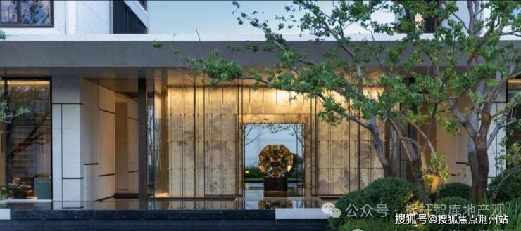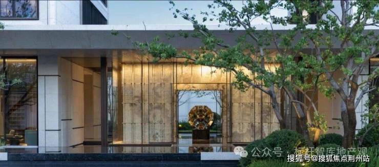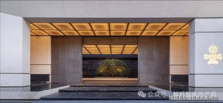 铜门之内,一株树龄200多年的进口羽毛枫翩然挺立。整个门头造价高昂,虽没有华丽的炫技,但透着精致低调的雅奢感。