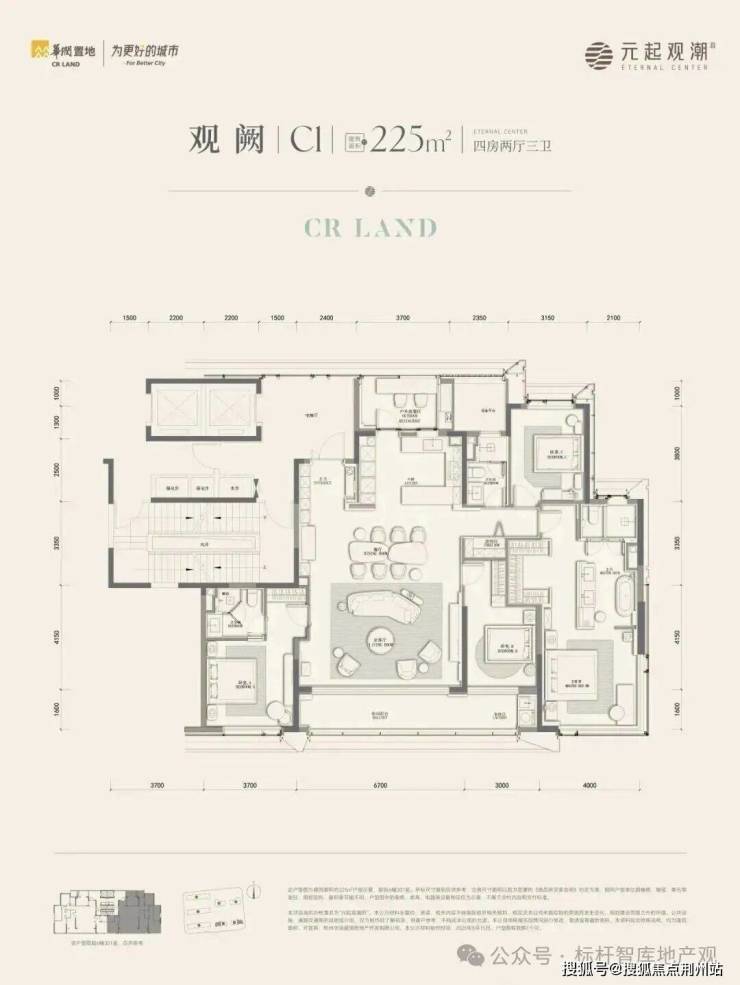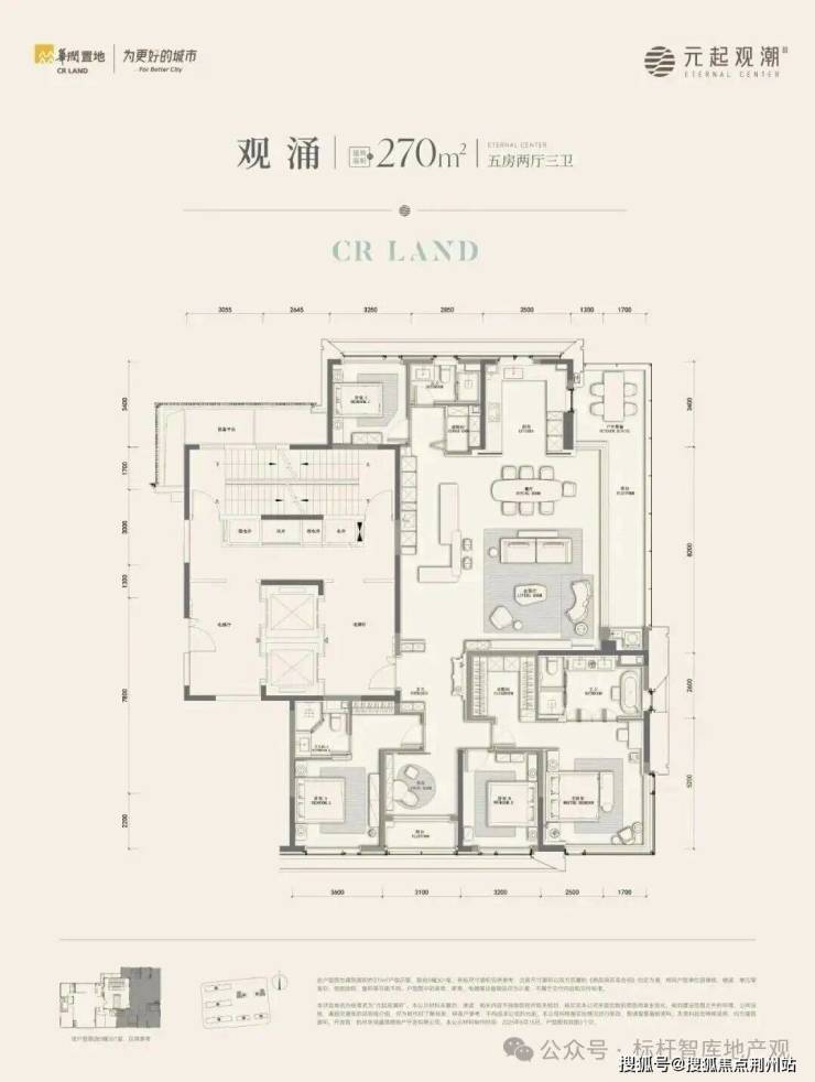 在元起观潮建面约225m²及建面约270m²户型里,五房三卫的整体格局,全能社交岛台,开放式格局带来日常生活的惬意和浪漫;独享的无遮挡观景视野,270°环幕定制能够收藏中心与千年运河的风景;内外双玄关设计,兼具收纳与仪式感,演绎从容归家的温度和礼序……