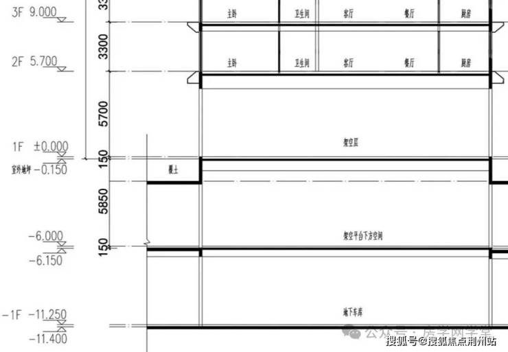 高层底部设有高度6米高架空平台+5.7米高架空层,即住宅整体架空高度达11.7米,同时也将配套用房置于架空平台下方,使日常生活界面更加整洁。