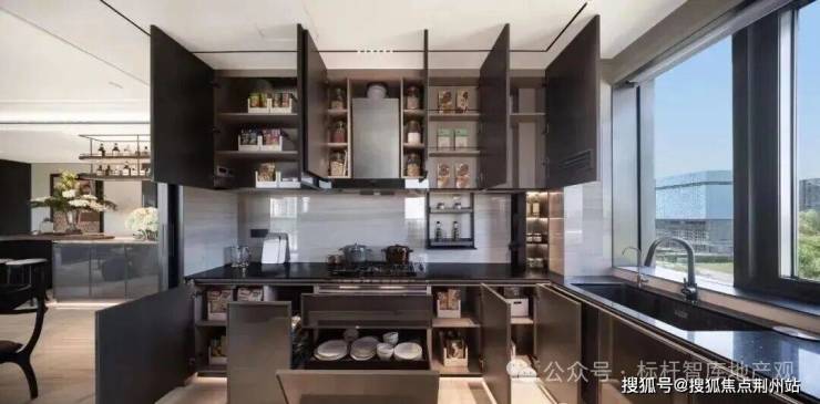 穿过巴西宇宙黑奢石打造的观潮桥,约12米高的黑石崖飞瀑倾泻而下。由于首层抬高的设计,元起观潮园区相当于普通小区3楼的高度,更具私密性和立体感。
