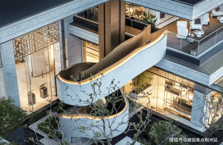 建筑立面以现代简约风格为基调,搭配玻璃幕墙与金属线条,勾勒出轻盈挺拔的轮廓;园区内通过多层次景观设计,营造“一轴三园九境”的沉浸式园林体验。更依托金华武义江畔的天然水系资源,实现“推窗见绿,临水而居”的理想生活场景。