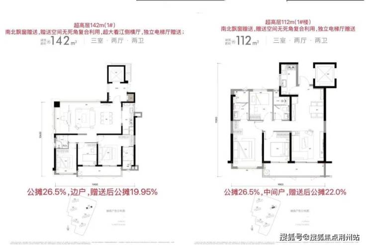✅户型:边户142户型(270°转角瞰江),中间户112户型
