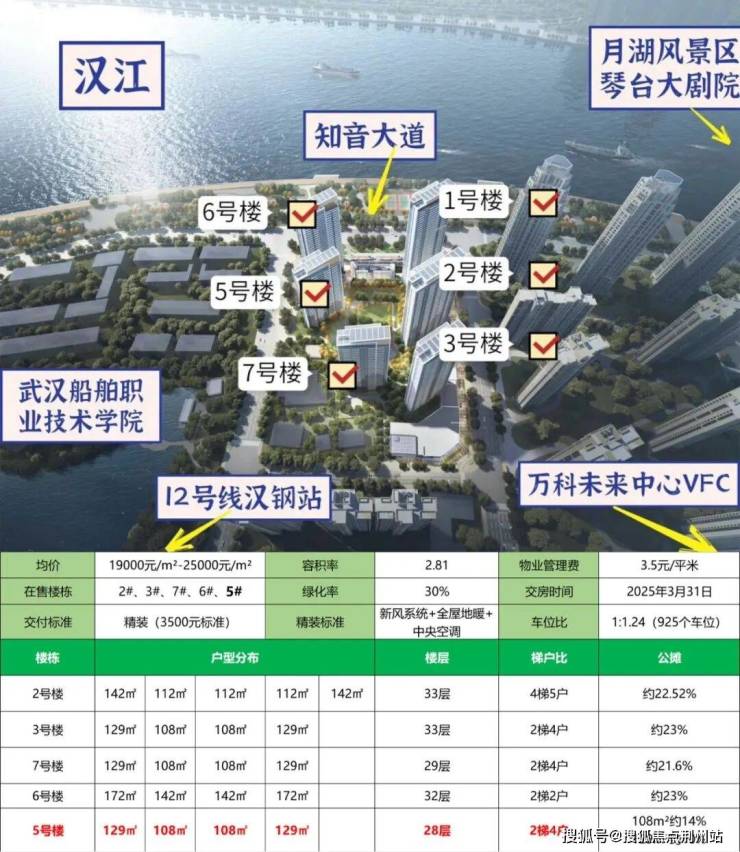✅户型:边户129户型(270°转角瞰江),中间户108户型