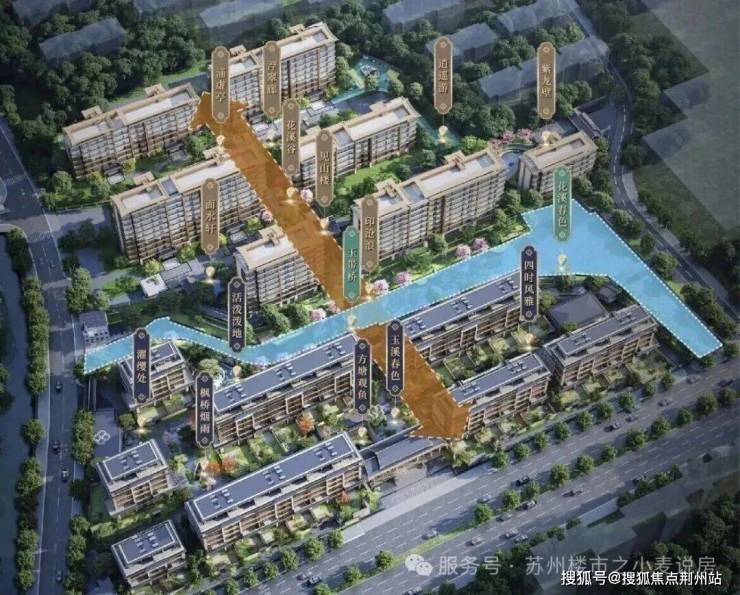 以姑苏枕河为图,打造天然双园:以滨河对叠加、洋房进行区隔
